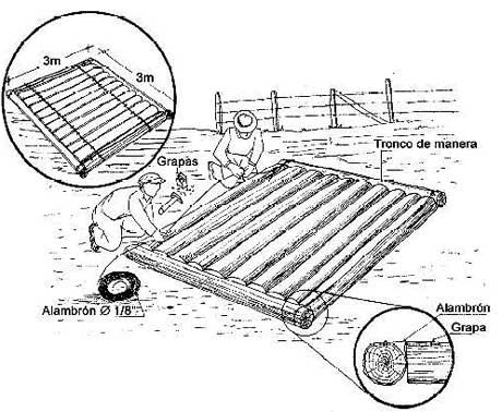 Armar un “empalado o entarimado” con troncos de madera de 3 metros de largo, unidos con un alambrón de 1/8 de pulgada de diámetro. Este camino se construye en módulos de 3 metros de longitud por 3 metros de ancho, siempre según las necesidades y el avance del relleno. Una vez armado este camino de acceso, hay que cubrirlo con cascajo para evitar que los vehículos patinen sobre él. Se recomienda que sean armados in situ, para lo cual el terreno deberá estar bien compactado y contar con un buen drenaje provisional (figuras 7.42 y 7.43).