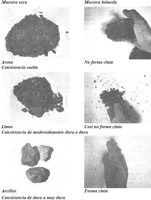 En el cuadro B.1 y en la figura B.2 se describen las apariencias y sensaciones de diferentes texturas de suelo desde un punto de vista muy general.
