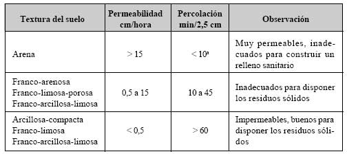 a Terrenos muy permeables o permeables no son adecuados para la disposición de residuos sólidos.