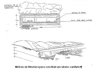 Este método se utiliza en regiones planas y consiste en excavar periódicamente zanjas de dos o tres metros de profundidad, con el apoyo de una retroexcavadora o tractor de oruga. Es de anotar que existen experiencias de excavación de trincheras hasta de 7 m de profundidad para relleno sanitario. La tierra que se extrae, se coloca a un lado de la zanja para utilizarla como material de cobertura. Los desechos sólidos se depositan y acomodan dentro de la trinchera para luego compactarlos y cubrirlos con la tierra.