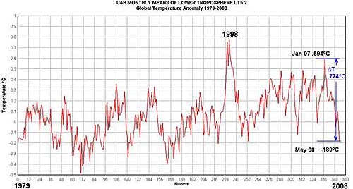Pero nos dirán que las temperaturas aumentaron ligeramente durante Junio. Sin embargo, hasta el final de Mayo, el descenso de temperatura de nueve meses seguidos que comenzó en Septiembre fue más grande (-0,77ºC) que el calentamiento de todo el Siglo 20: +0,6ºC.