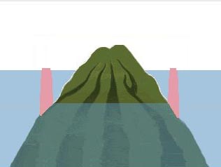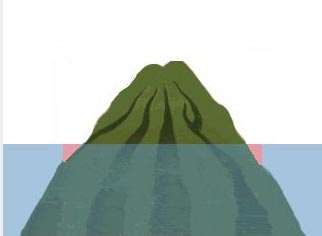 Como esa montaña-isla pesa mucho, y el suelo de abajo no es tan firme, se va hundiendo podo a poco. Desde el punto de vista del nivel del mar es lo mismo que si el mar estuviera subiendo. Algo así: