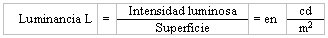 La luminancia de una fuente es el cociente entre la intensidad luminosa medida en candelas (cd) y la superficie cubierta por la vista (también se denomina a la luminancia como luminosidad o brillantez).