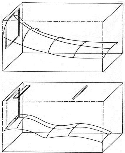 Una distribución mucho m s uniforme de la luz se obtiene por medio de la iluminación cenital. Las luces centrales resultan posible sin embargo, solo en construcciones llanas como se ve en la Figura 38.