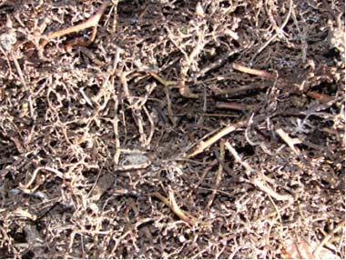 Mientras, la pila de MOB, que inicialmente era de una altura 60-70 cm, descendió por consumo y compactación a 38-40 cm, mostrando una humificación bastante homogenea, con solo algún que otro remanente de MOB forme e identificable con los materiales de origen (pasto, orujo, escobajo). Figura 7.