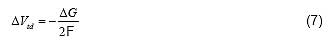 El potencial termodinámico ( ΔVtd = 1.24 V) está dado por la ecuación