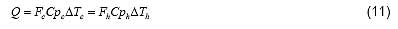 siendo Q el calor intercambiado, F el flujo molar de la corriente, Cp, la capacidad calorífica a presión constante y Tin y Tout las temperaturas de entrada y salida al intercambiador, respectivamente.