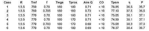 - El quemador opera a presión atmosférica y se asume cambustión completa del CO, CH4 y H2.