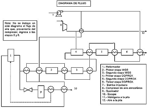 - El aire comprimido que se utiliza en la etapa COPROX no es llevado a la temperatura de la mezcla enriquecida en hidrógeno.
