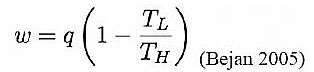 “Nosotros seguimos esto desde el punto de vista “constructal” donde la circulación [global] misma representa una geometría de flujo que es el resultadote la maximización de un comportamiento global sujeto a restricciones globales.” “La mayor potencia que el sistema compuesto podría producir está asociado con la operación reversible de la planta de potencia. La entrega de potencia en este límite es proporcional a:”