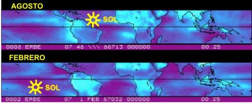 Claramente, el albedo de las nubes (de los cúmulos y cumulonimbus) siguen al Sol al norte y al sur, impidiendo que la Tierra se sobrecaliente. Esto muestra de manera definitiva que, más que el calor ha sido causado por la nubes; son las nubes quienes fueron causadas por el calor.