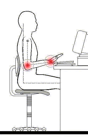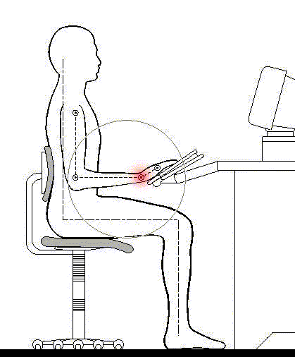 Mas aún, muchos usuarios trabajan con los codos en flexión, lo que puede llegar a producir una compresión de los nervios mediano y cubital en el codo, y -además- restringir la circulación sanguínea hacia las manos.