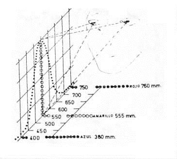 Sensibilidad espectral: Está dada por la sensibilidad del sistema óptico a la frecuencia de luz reflejada en el centro del espectro visual (amarillo verde), que a la reflejada en los extremos (rojo o azul).