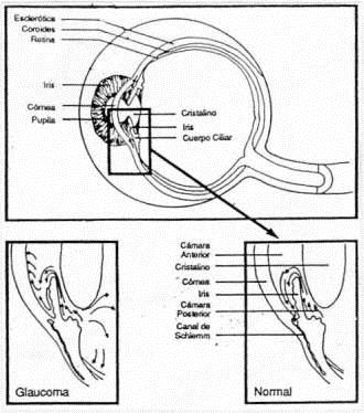 La enfermedad se produce dentro del ojo; entre el cristalino y la córnea, hay un liquido transparente que se produce y elimina continuamente; si los canales de salida de este líquido se cierran, se dificulta o bloquea la eliminación del mismo, produciéndose su acumulación, trayendo el aumento de presión dentro del ojo, que hace disminuir el flujo de sangre al nervio óptico, ocasionando daño.