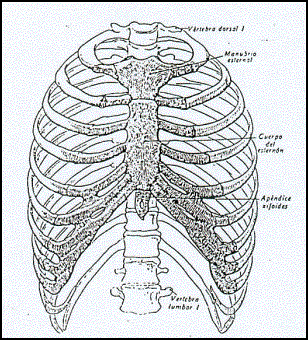 La caja torácica tiene una serie de huesos planos (costillas) que sostienen la pared, evitando que la estructura colapse cuando se contrae el diafragma. Ver figura 50.