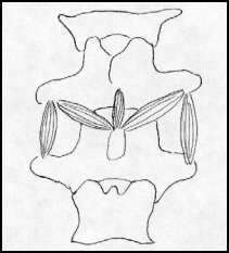 Figura 53. Unidad funcional simple con movimiento (articulación). Está compuesta por dos vértebras estabilizadas por los músculos y ligamentos interespinales, además los músculos rotatorios segmentales y intertransversos.