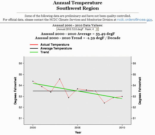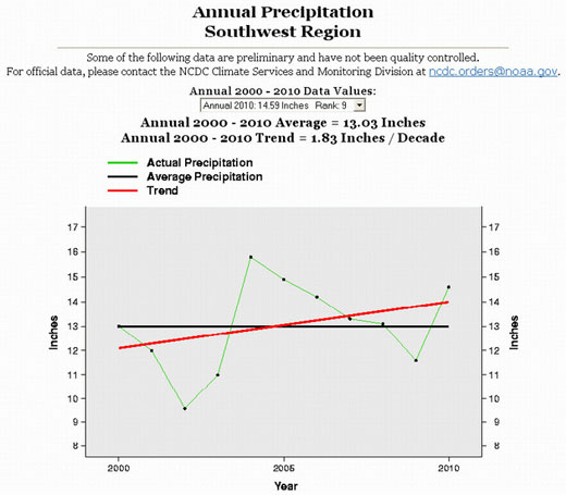 Parece increíble que los investigadores no tengan contacto con la realidad, eso que yo llamo, “echar una mirada a través de la ventana”. Claro que hacia afuera, donde está el mundo real y no seguir hipnotizados –y embrutecidos- por sus juegos de video que llaman “modelos computados”. El mundo real figura en los datos contenidos en el Centro Nacional de Datos Climáticos del NOAA. Cualquiera puede acceder a la información de sus base de datos y hacer sus propios gráficos de tendencia para cualquier región de los EEUU (y del mundo), tanto de temperatura como de precipitaciones.