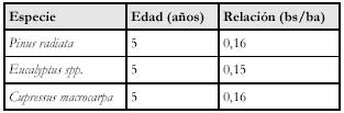 para calcular la biomasa de la porción subterránea de los árboles, se utilizó las relaciones entre biomasa aérea y subterránea reportadas por Nabuurs & Mohren 1995, y resumida de la siguiente manera: