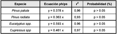 El factor forma se obtuvo mediante la relación obtenida entre el volumen real del árbol y el de un cilindro perfecto, teniendo como base las mediciones obtenidas de diámetro basal y en el ápice de cada árbol extraído. Seguidamente se establecieron las relaciones de peso húmedo/peso seco para así determinar el contenido de biomasa del fuste de cada uno de los árboles mediante la utilización de regresiones simples con los siguientes resultados: