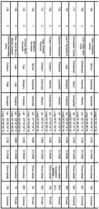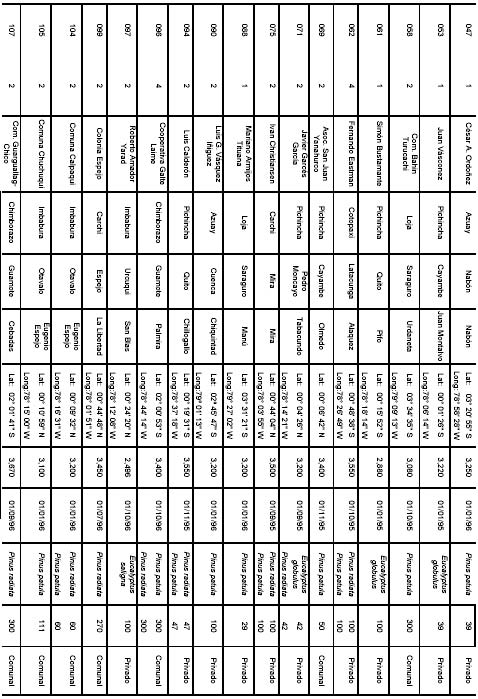 Coppus, R., Groenendijk, J., Hofstede, R. 1.997. Impacto de plantaciones de Pinus sobre el suelo y la vegetación en los andes del Ecuador. Presentación y ordenación de datos básicos. Proyecto ECOPAR. Amsterdam, Netherlands. (Informe interno).
