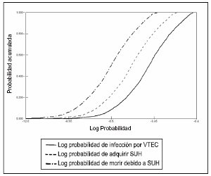 ![]() Figura 3. Probabilidad de adquirir una infección por VTEC, SUH y mortalidad. |