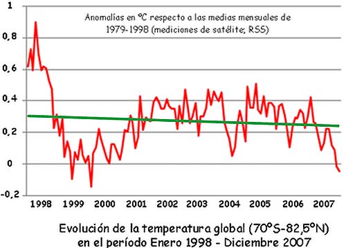 De la observación de los datos y de la historia se puede afirmar que la recuperación ocurrida desde la Pequeña Edad de Hielo se detuvo en 1998 y la temperatura global estuvo estable desde entonces. El gráfico lo muestra: