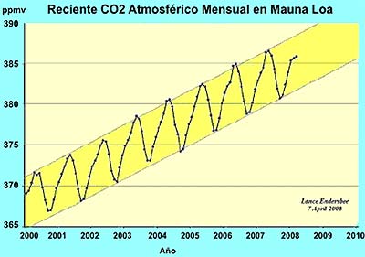 También: otra tendencia que no se está comportando de la manera profetizada por los promotores del mito del Calentamiento Antrópico es la del aumento de CO2 en la atmósfera. Aunque las emisiones de dióxido de carbono continuaron creciendo (la actividad industrial lo hizo, pero eso no requería de un Nostradamus para predecirlo) hay sin embargo indicaciones de que el aumento de esas concentraciones se están frenando, como se puede apreciar en las mediciones del Monte Mauna Loa: