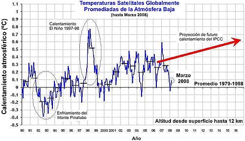 Muchos equipos de científicos hicieron modelos computarizados del clima y todos ellos predijeron que el aumento del dióxido de carbono causaría un calentamiento sostenido y constante, casi lineal. Ninguno –NI UNO SOLO – de esos modelos predijo que el calentamiento global haría pico en 1998, luego se detendría durante 10 años y finalmente la temperatura global comenzaría a disminuir, a pesar de que la concentración del CO2 en el mismo período aumentó 5%. Pero eso es lo que ha sucedido! |