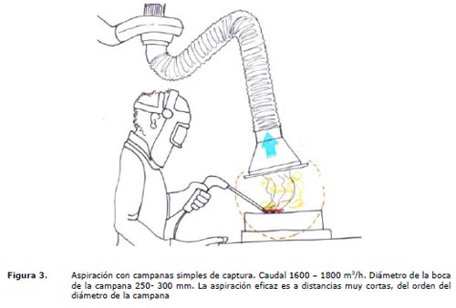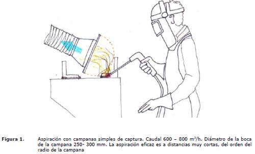 Es frecuente utilizar sistemas de ventilación para captar los humos de soldadura cuando este proceso se realiza en taller. Sin embargo en muchas ocasiones las campanas de captura de los humos se han diseñado con caudales muy bajos de aspiración, lo cual hace que se utilicen a distancias muy superiores a las que podrían considerarse distancias de captación eficaz para los caudales de aspiración de dichas campanas.