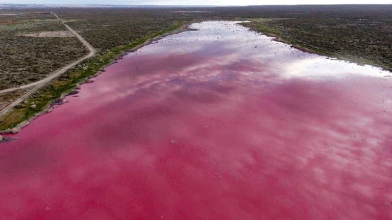 Polémica por una laguna de Trelew que se “tiñó” de rosa: una empresa fue multada por volcar residuos industriales en el agua