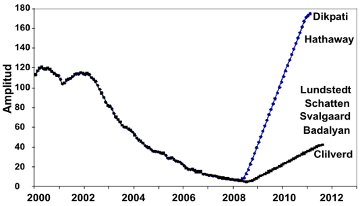 Ya se ha visto que las predicciones de David Hathaway sobre el inicio e intensidad del ciclo solar 24 fueron revisadas y modificadas, moviendo los postes del arco hacia delante en el futuro, desde 2004, con gráficos que desafían la imaginación sobre cuáles serían los procesos en el sol que harían que su actividad se recuperase súbitamente y se escapara como un cohete hacia arriba. Finalmente Hathaway se ha llamado a un avergonzado silencio y debe estar esperando angustiado alguna muestra de que el sol vuelva a mostrar alguna voluntad de iniciar su Ciclo 24.