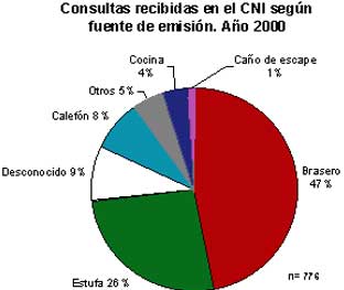 Todo artefacto usado para quemar algún combustible puede producir MONÓXIDO DE CARBONO si no está asegurada la llegada de oxígeno suficiente a la llama. Por lo tanto puede haber producción de MONÓXIDO DE CARBONO en calefones, termotanques, estufas, y cocinas a gas, calentadores a gas o kerosene, faroles a gas o kerosene, hogares o cocinas a leña, salamandras, braseros, parrillas a leña o carbón, hornos a gas o leña, anafes, calderas, motores de combustión, etc. Según las estadísticas del Centro Nacional de Intoxicaciones del Hospital Posadas, para un total de 778 consultas registradas en el año 2000, por sospecha de intoxicación con monóxido de carbono, casi la mitad (47%) se relacionaron con la presencia de braseros en el hogar. En segundo lugar aparecen las estufas (26%), sin especificar el tipo de combustible que utilizaban (kerosene, alcohol, leña o gas).