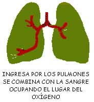 El MONÓXIDO DE CARBONO ingresa al organismo a través de los pulmones y desde allí pasa a la sangre donde ocupa el lugar del oxígeno. Así reduce la capacidad de la sangre para transportar oxígeno y hace que las células no puedan utilizar todo el oxígeno que les llega. La falta de oxígeno afecta principalmente al cerebro y al corazón. Los síntomas se confunden a menudo con los de la gripe o de una intoxicación alimentaría.