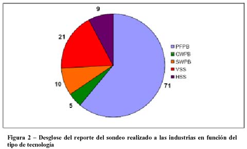 La tasa de participación de la tecnología Point Feeder Prebake (PFPB – ánodos precocidos y alimentación puntual) en la encuesta del año 2002 ha sido la más alta, mientras que para tecnologías Søderberg ha sido menos de la mitad de la instalaciones que están en operación. La Figura 2 muestra el porcentaje por tipo de tecnología de las 116 instalaciones que participaron en este sondeo, donde se puede ver claramente que el 71% representa a la tecnología PFPB.