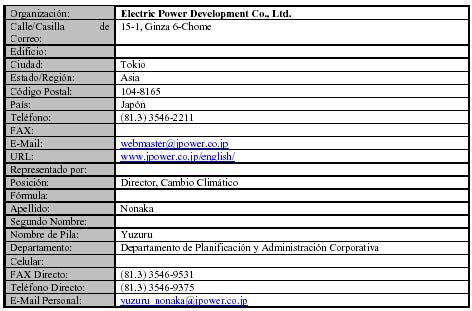 INFORMACIÓN DE CONTACTO DE LOS PARTICIPANTES EN LA ACTIVIDAD DE PROYECTO