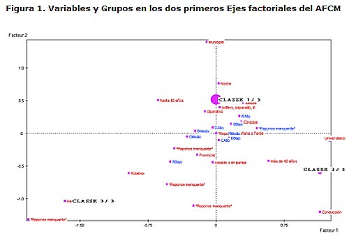 En la Figura 1, puede observarse gráficamente en los dos primeros ejes factoriales donde se encuentran ubicados los grupos definidos.