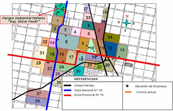 El Programa de Educación Vial abarca a 22 Empresas, las cuales emplean un total de 1.150 trabajadores aproximadamente[4]. Al momento de realizar esta presentación, se había capacitado y entregado material ilustrativo al 73 % del total de trabajadores. Éstos pertenecen principalmente a empresas cuyos establecimientos están ubicados en el Parque Industrial de Rafaela o linderos a rutas de acceso a la ciudad (Ver Mapa I).