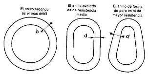 Figura 8 Las argollas o cáncamos tienen que tener indicada por el fabricante la carga a máxima admitida por ellos, como por razones “secretos de fabricación” no se puede saber las características de la composición del acero con que fueron hechas ni del estado cristalográfico por el tratamiento térmico, estos elementos requieren del siguiente cuidado: – No debe ser sometido al calor. 3.2. ANILLOS Los anillos pueden tener distintas formas que pueden ir de la circular a la recta, pasando por todas las intermedias como se observa en la figura 9.