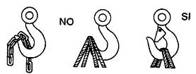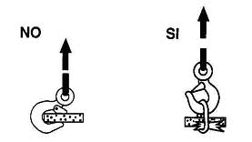 Figura 12 Los ganchos constructivamente tienen los mismos problemas que los demás accesorios de izaje y responde a los mismos problemas que los cáncamos: – No debe ser sometido al calor. Las deformaciones rajaduras u otros daños son más riesgosos en un gancho que en cualquier componente razón por la cual estos deben ser inspeccionados periódicamente y ante la primer duda o señal deben ser dados de baja y destruidos. 3.3.1. USO DE LOS GANCHOS Durante el desarrollo de operaciones con carga debe controlarse: – Los esfuerzos deben ser soportados en el asiento de los ganchos nunca en el pico (ver figura 13)