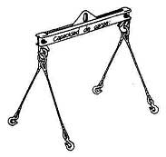 Figura 14 3.4. PÓRTICOS Para mover cargas largas o que obliguen a desarrollar ángulos mayores a 90° a las eslingas se sugiere el uso de pórticos como los representados en las figuras 15 y 16. Los denominados semi pórticos son utilizados para elevar cargas que puedan flexionar como caños, barras, alfarjías, etc. por lo que requieren dos o más puntos de apoyo.
