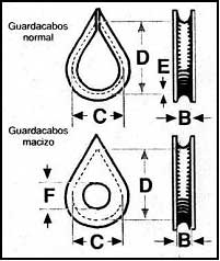 Cualquiera que sea el modelo de guardacabos empleado, éste debe tener las características adecuadas al tipo de cable (diámetro) a emplear. Se indica en la siguiente figura los valores mencionados.