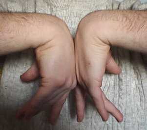 Exploración física: En los casos avanzados puede haber atrofia de eminencia tenar, debilidad y dificultad para los movimientos de abducción y oposición del 1er dedo (ver fotografias de la izquierda).