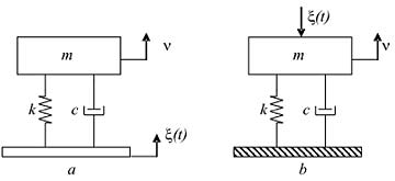 Fig. 1. Modelos de un grado de libertad usados para el análisis de vibración transitoria: (a) excitación por desplazamiento en la base, (b) excitación por fuerza aplicada en la masa.