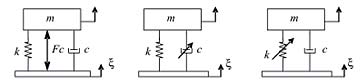 Fig. 6. Estrategias de control de vibraciones: (a) Control completamente activo, (b) Control adaptativo de amortiguamiento variable, (c) Control adaptativo de elasticidad variable.