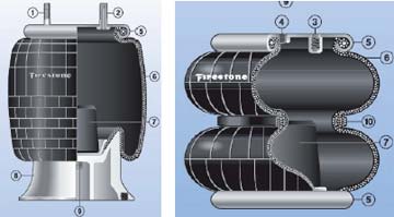 Fig. 8. Ejemplos de elementos elásticos variables de aire disponibles comercialmente, marca Firestone.