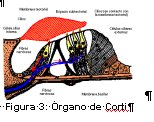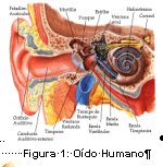 El Oído Humano (Fig. 1) tiene tres segmentos definidos: Oído Externo que va hasta la Membrana Timpánica; el Oído Medio (Fig. 2 y 3) que contiene a la cadena de huesecillos (martillo, yunque, estribo) y el Oído Interno que está constituido por la Cóclea o Caracol (que contiene al Órgano de Corti – Fig. 3) y a los conductos semicirculares.