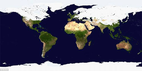 A primera vista parece el gráfico de un programa del Discovery Channel sobre una distante edad de hielo. Pero esta asombrosa imagen muestra al mundo tal como está hoy –con la mitad del Hemisferio Norte cubierta con nieve y hielo.
