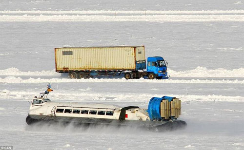 El frío extremo que cubre al Hemisferio Norte hizo que el Río Hei Longjian en el noreste de China se congelara tan espesamente que los camiones pueden cruzarlo desde Rusia resultando en un aumento del comercio.