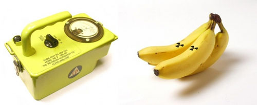 Hay muchos alimentos que son radiactivos por naturaleza, y los plátanos en particular, debido a que son ricos en potasio. El potasio contiene un 0,0117 por ciento de potasio-40 (isótopo 40K), que es radiactivo. Las fugas de radiación de las plantas nucleares suelen medirse en unidades extraordinariamente pequeñas (es típico hacerlo en picocurios, una billonésima parte de un curio). Comparando la exposición por estas causas a la dosis equivalente de un plátano se puede obtener una evaluación más realista de los riesgos reales.